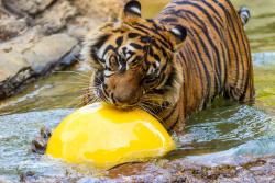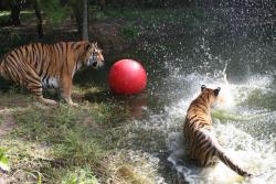 But that's not all. We also offer a 48” diameter Ball with a very thin wall that's perfect for animals that love to push things around, but not pick them up. And for those tigers that want to show off their strength, our smaller 18” diameter Ball with a thick wall is just what the doctor ordered.
