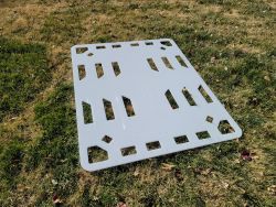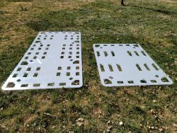 Backboard: A single sheet of HDPE Plastic with various numbers and sizes of handholds and strapping points.