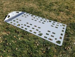 Bull Nose: A bent Aluminum extension intended to be mounted onto a Backboard to allow easier patient recovery if tow straps are necessary. The Bull Nose will also spread the recovery force over a greater area lessening the stress on the Backboard.