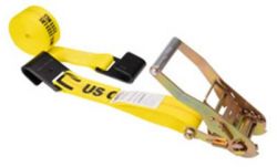 Large Ratchet Strap: Steel Flat Hooks BOTH ends; Heavy Duty; Polyester Webbing; Yellow; 3,333 lbs. working load; other sizes available