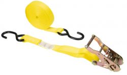 Small Ratchet Strap: 1" wide; S-Hooks BOTH ends; Heavy Duty; Industrial-Grade Webbing; Yellow; 400 lbs. working load; other sizes available