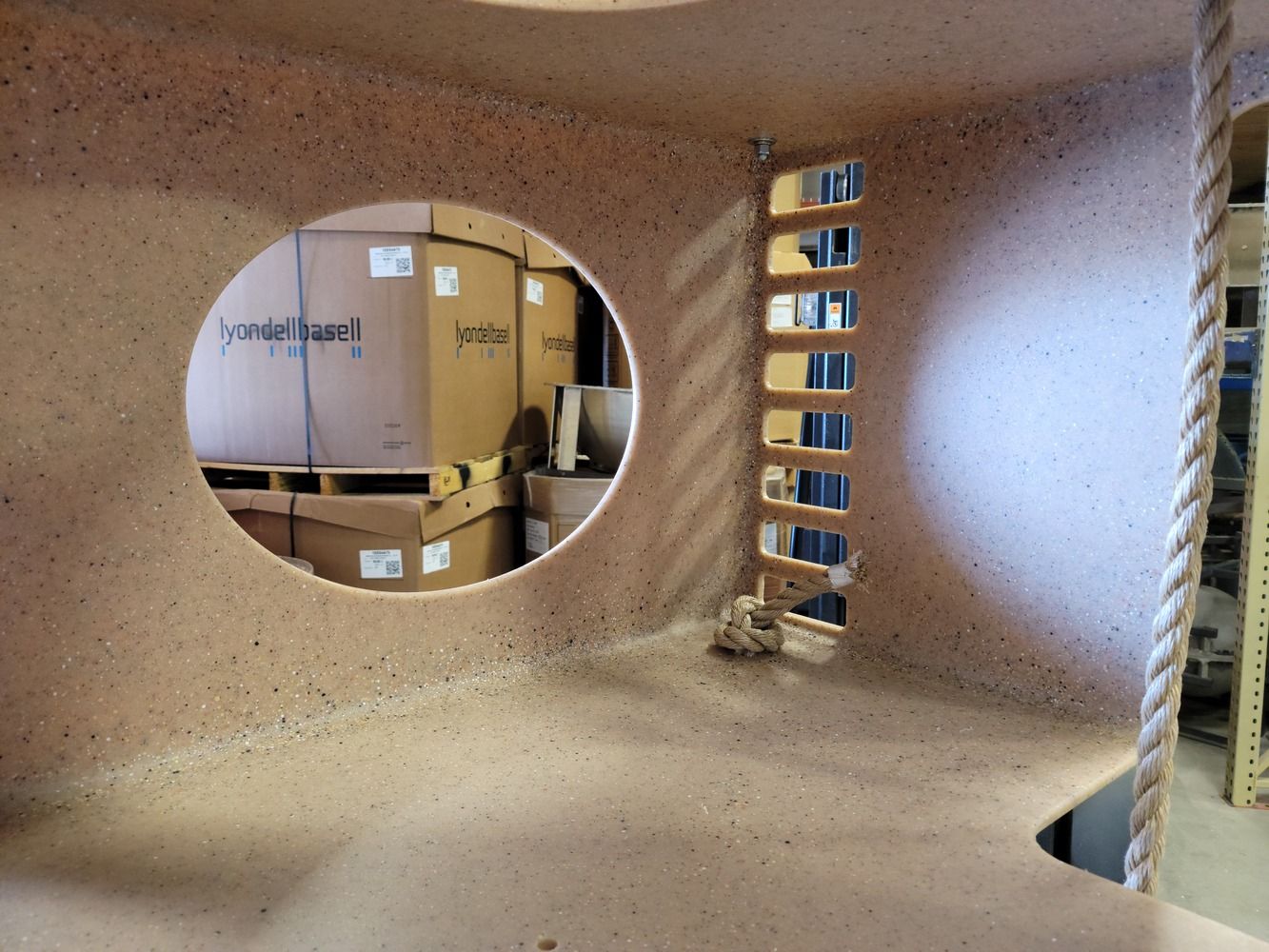 - At both ends of Rope Swing, finger holes available in the Ton of Fun wall allow animals to access the interior or top.